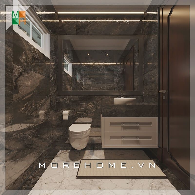 Tủ dưới lavabo thiết kế nhỏ gọn, mang phong cách hiện đại để căn phòng thêm ngăn nắp.