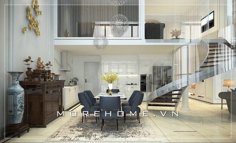 Mẫu bàn thờ có đường nét chạm khắc tinh tế và hiện đại được ưa chuộng tại MoreHome.