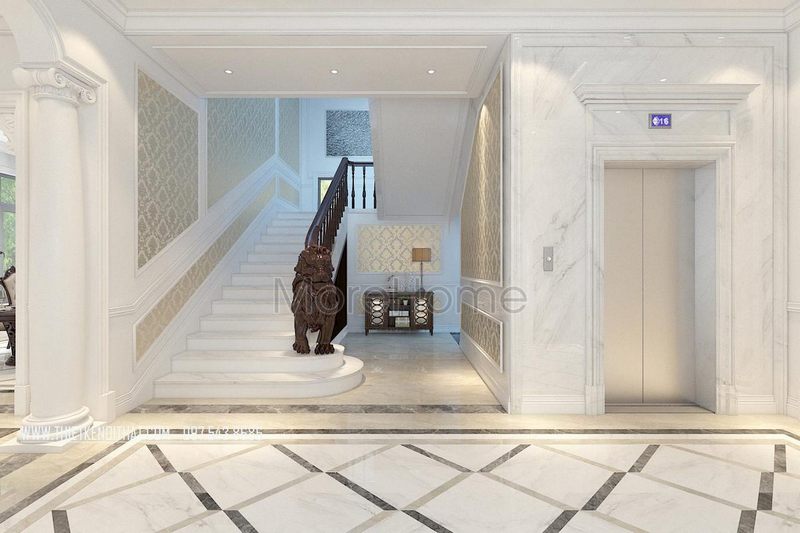 Mẫu cầu thang cao cấp với trụ cái bằng gỗ tự nhiên mang lại sự sang trọng cho các căn biệt thự, nhà phố rộng lớn.